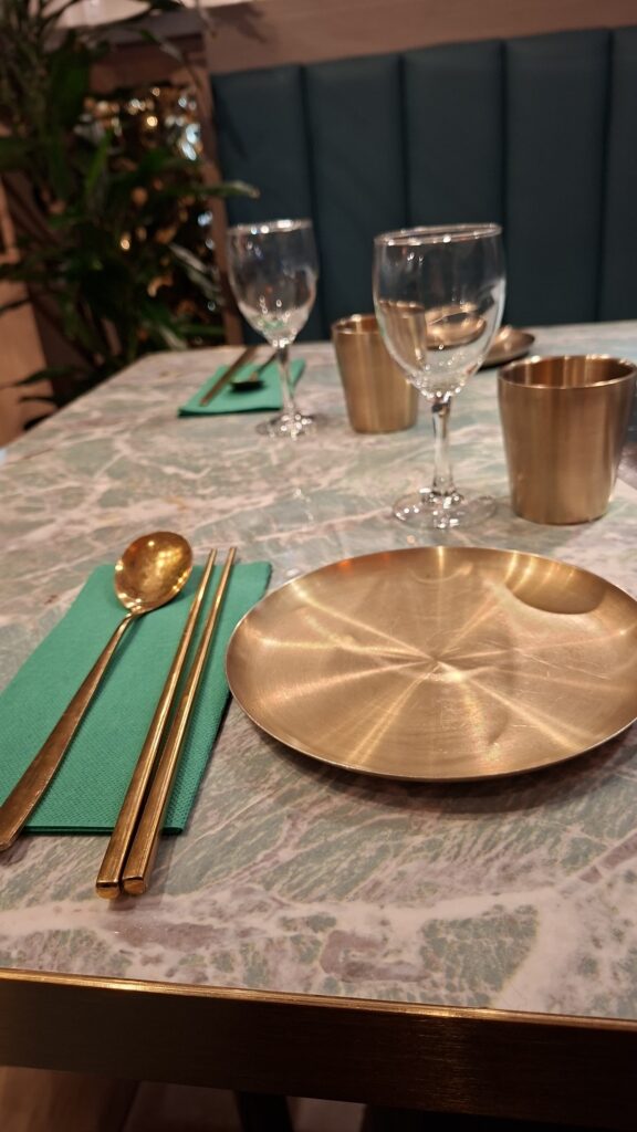 Chez Haengbok Paris, le luxe se vit dans le détail. La présentation des plats, épurée et graphique, invite à la contemplation avant la dégustation. Les arts de la table, soigneusement choisis, prolongent l’expérience sensorielle et installent une atmosphère feutrée, intime et résolument contemporaine.