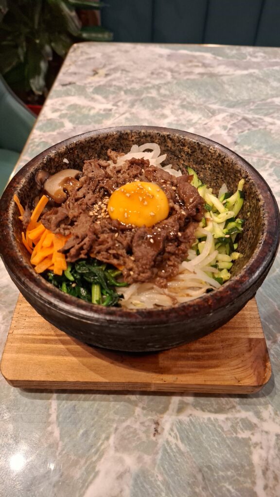 Parmi les signatures de la maison, le Bibimbap se distingue par son élégance maîtrisée : riz délicatement nacré, légumes de saison travaillés individuellement, protéines d’exception et sauce gochujang subtilement équilibrée, pensée pour révéler sans jamais dominer.