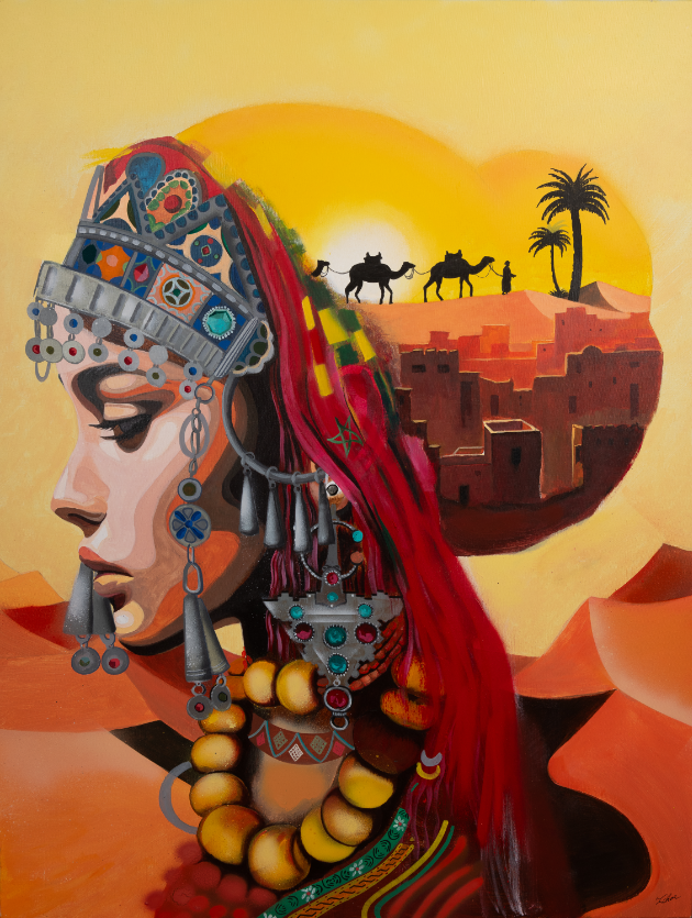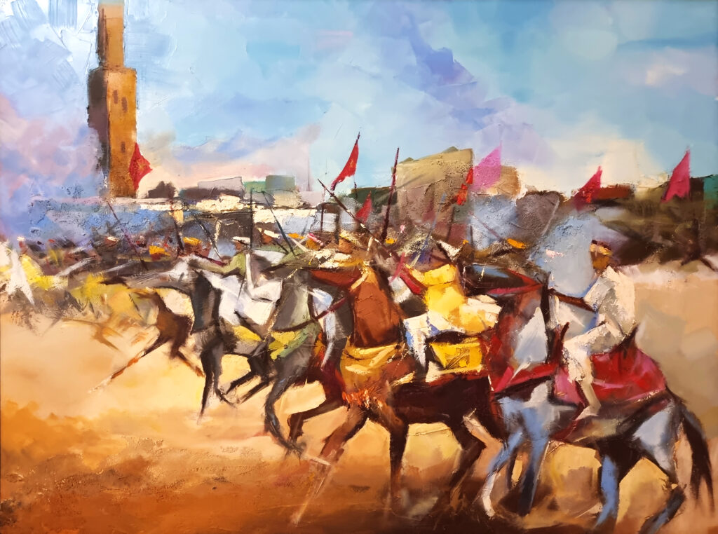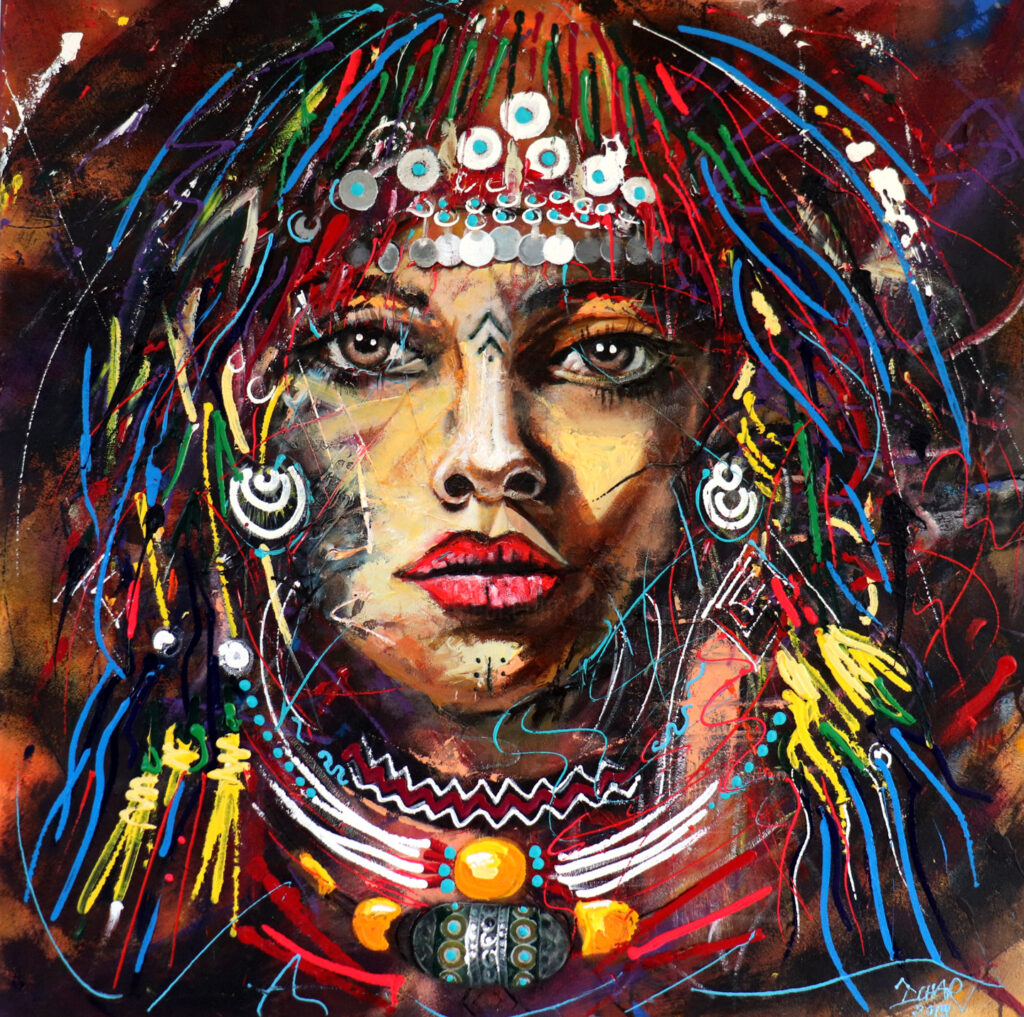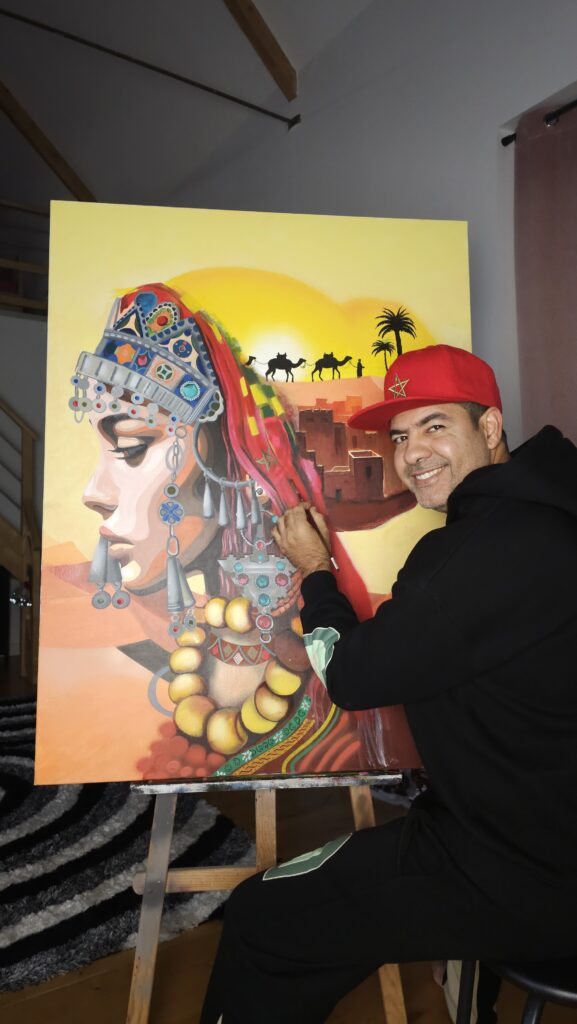 Originaire du Maroc, son pays natal l’accompagne jusque dans les toiles, toujours très concentré, précis, mais habité par une énergie presque chorégraphique, il a l’art de donner vie à chacune de ses créations. Son geste est vif, sûr, empreint de cette urgence que connaissent ceux qui peignent comme on respire.