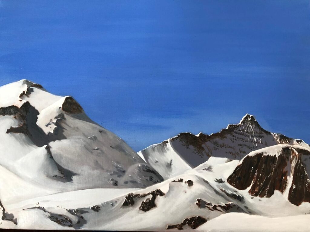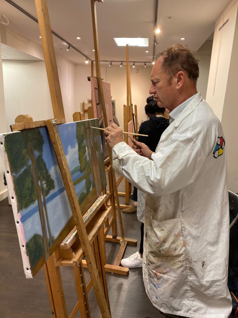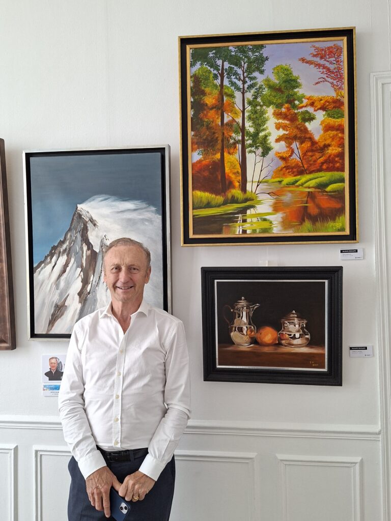 En 2018, au moment de son départ à la retraite, il décide de reprendre pleinement la peinture. Désireux de se remettre en selle, il aimait se rendre dans une galerie parisienne proche de son domicile, un lieu inspirant qui lui permettait de raviver son regard artistique et de retrouver l’élan créatif. C’est dans ce contexte que renaît véritablement sa passion pour la peinture, concrétisée par la réalisation d’un paysage de montagne représentant l’endroit où il aimait se rendre avec ses enfants pour skier, son travail mêle ainsi souvenir personnel et émotion picturale.